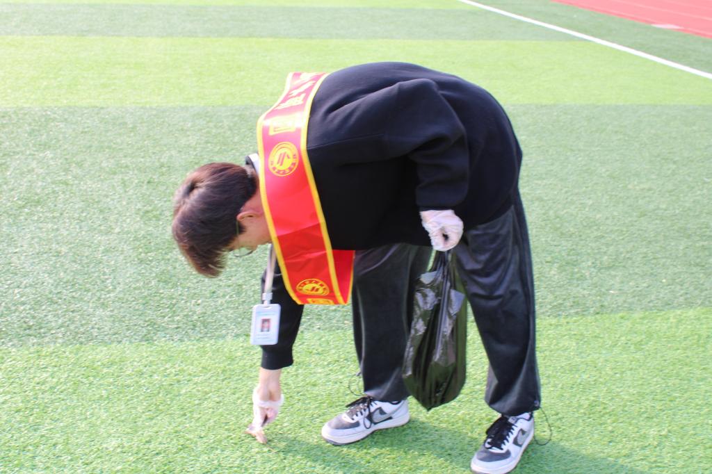 经过严密的部署安排,他们分为了两个小组,成员们手持垃圾袋、夹子等工具从南北两端对操场垃圾形成“夹击之势"。小到烟头,大到塑料瓶,志愿者们不放过每一片垃圾,他们不怕脏不怕累,力求不留死角、不留盲区,在大家的共同清理下拾取了好几袋垃圾,操场跑道和草坪再次恢复了干净,青协志愿者们的红色身影在操场上显得格外闪亮。