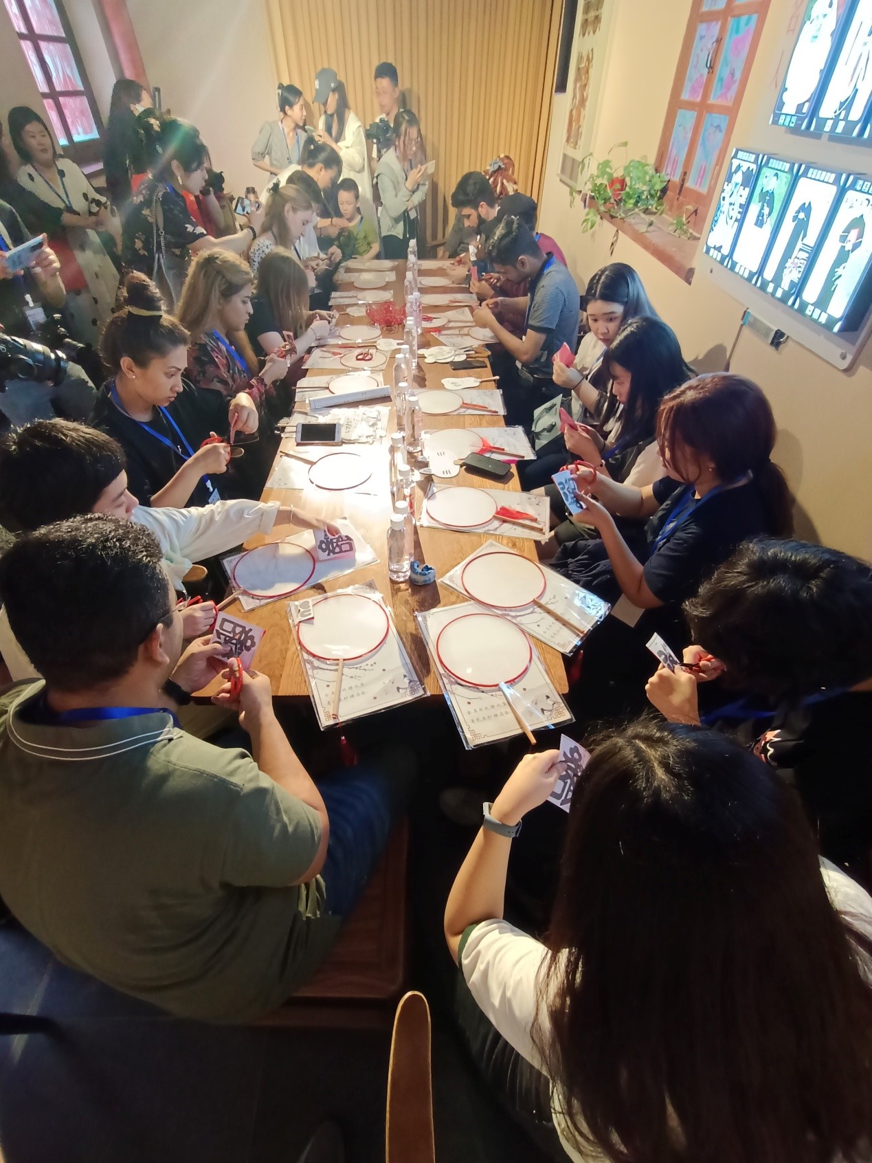 随后,职工来到位于时彦街的烟台剪纸馆,烟台剪纸传承人梁巧艳向外国友人们介绍剪纸艺术的起源、发展及基本技巧,并且示范剪纸步骤。从纸的折叠到剪刀的运用,外国友人逐一尝试,以“我爱烟台”起手,收获了一幅属于自己的充满胶东地域特色的剪纸作品。